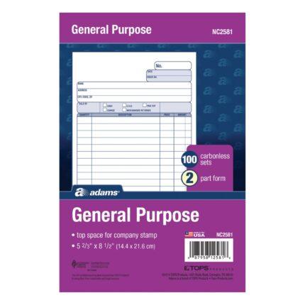 Adams General Purpose Unit Sets, 5.67 x 8.5 Inches, 2-Part, Carbonless, White/Canary, 100 Sets per Pack (NC2581)