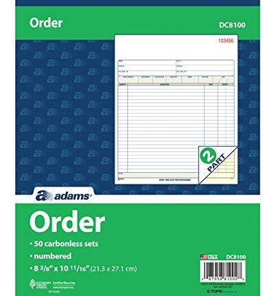 Adams Order Book, 2-Part, Carbonless, White/Canary, 8-3/8 x 10-11/16 Inches, 50 Sets per Book (DC8100) , 1 pack