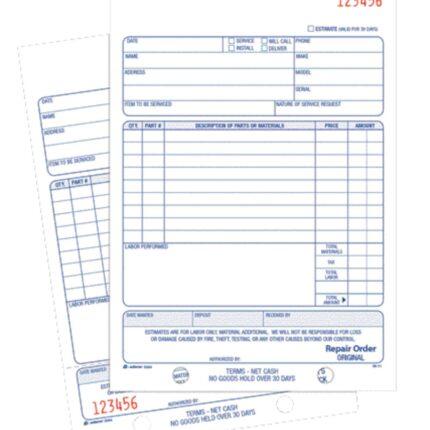 Adams Repair Order Book, Carbonless, 2-Part, White/White, 5-9/16 x 8-7/16 Inches, 50 Sets (D5084)